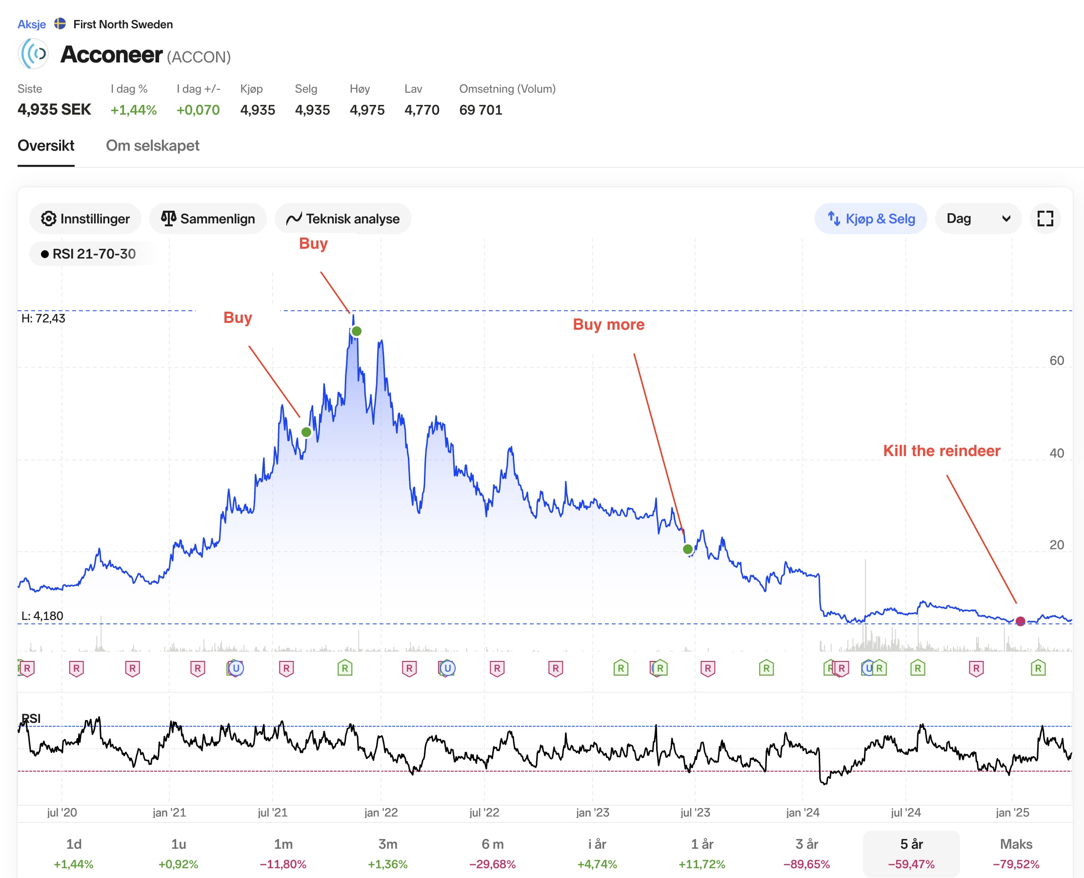 - Doing my own analysis, especially with Scandinavian stocks, where there’s not a lot of public hype or media noise.