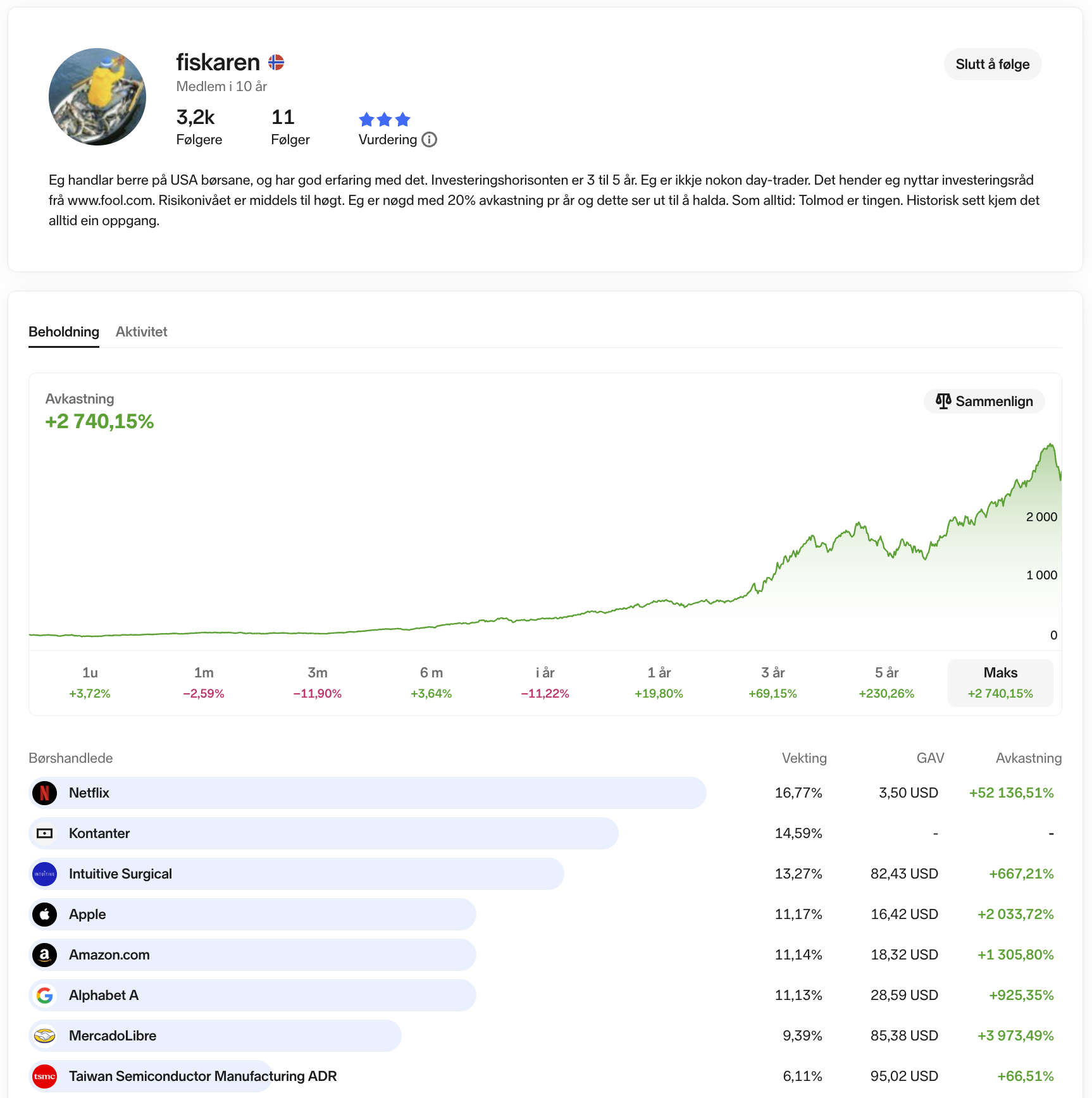 Nordnet has this interesting feature where you can follow other users’ portfolios via Shareville.